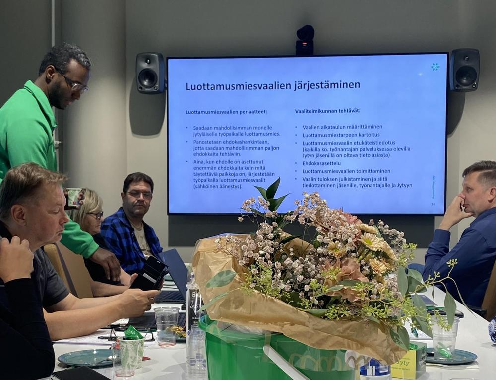 Aluetoiminnan asiantuntija Liban Sheik ja edunvalvontajohtaja Jukka Maarianvaara pitivät johtokuntalaisille ajankohtaiskatsaukset. Myös Jyty Metropolin puheenjohtaja Kaisa Soininen piti puheenvuoron kertoen ajankohtaisimmat asiat. Johtokuntalaiset saivat tärkeää tietoa työskentelyn tueksi.