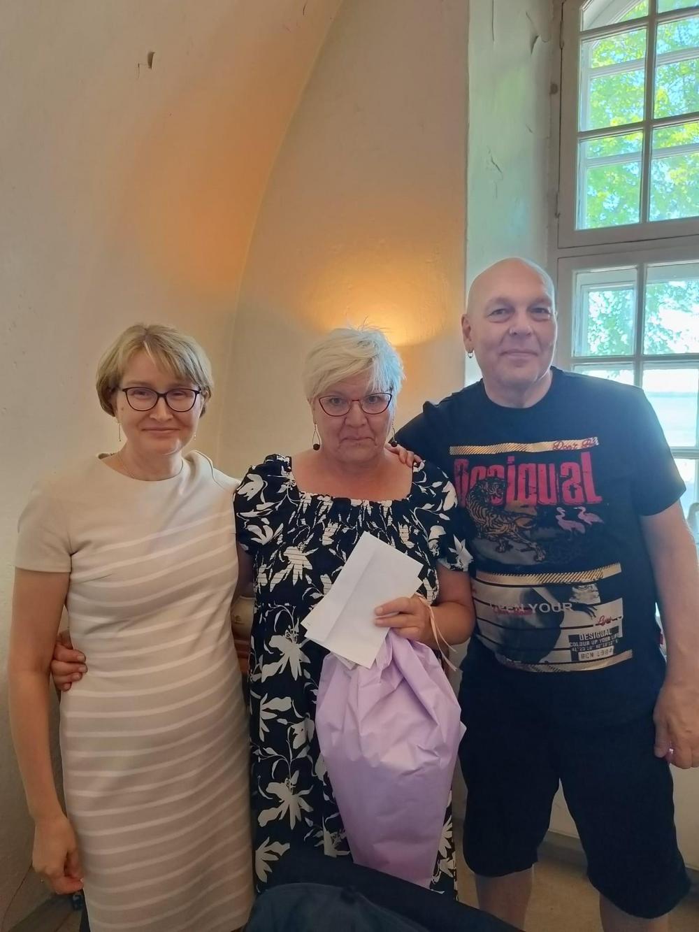 Onnittelijoina kuvassa ammattiosaston puheenjohtaja Tuija Hakkarainen ja