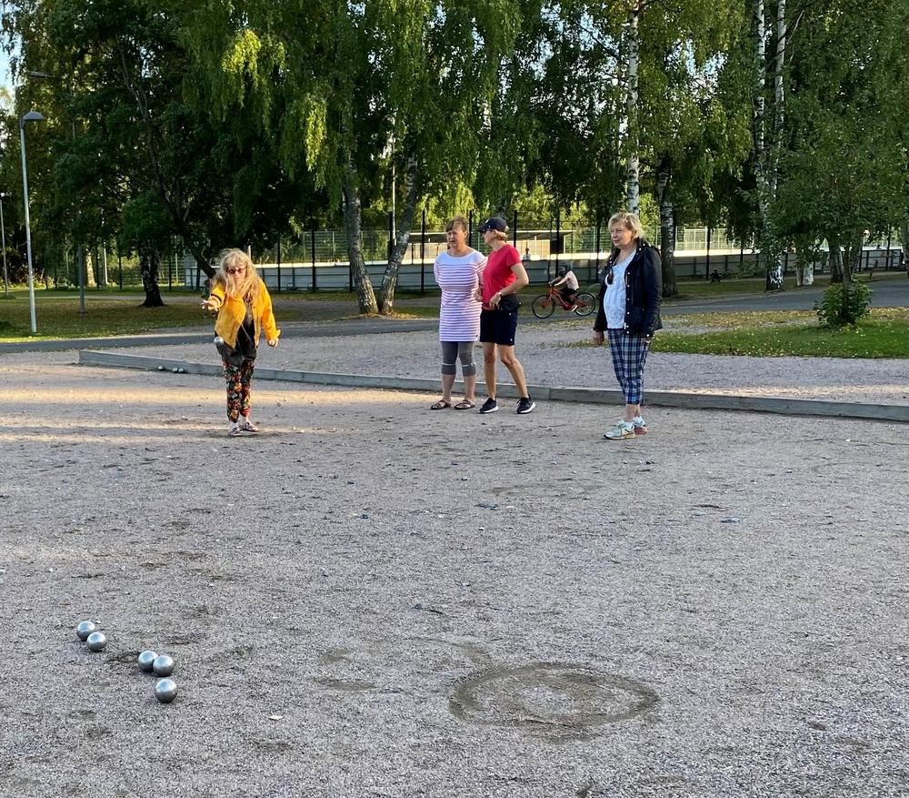 Kävimme tutustumassa petankin saloihin aivan upeassa kesäsäässä 22.8.2022 Myllypuron petankkikentällä.